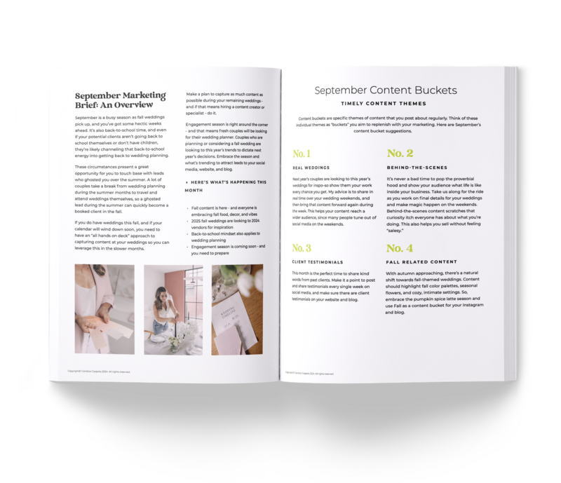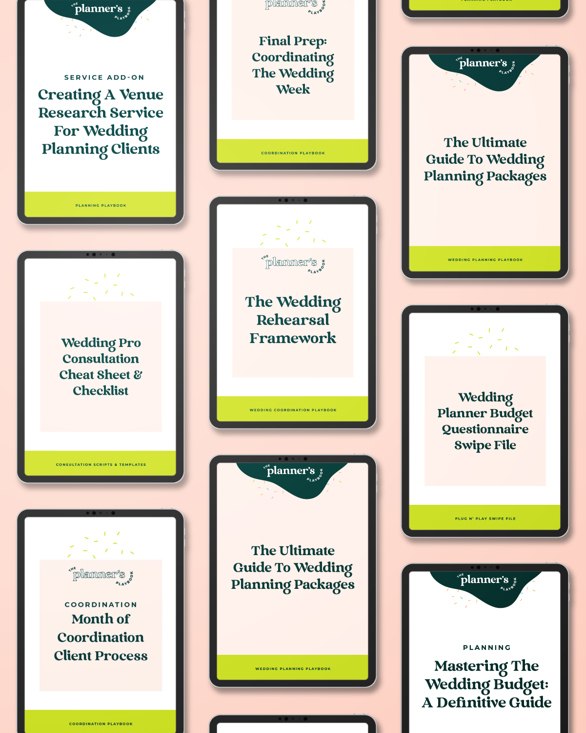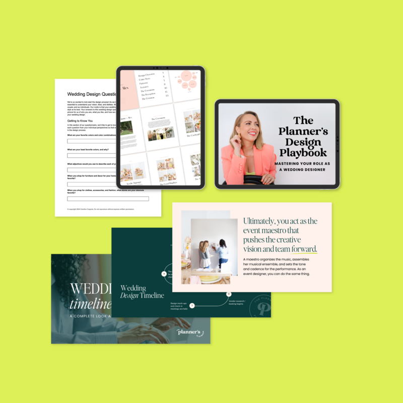 Every month you’ll receive a NEW Playbook straight to your inbox to help you start, scale, and grow your planning business. Filled with tangible and tactile advice we go all-in on the topic of the month to help you sharpen your skills and grow your wedding planning business. You'll fast track your wedding planning business success and grow quicker than if you tried to figure it out on your own.